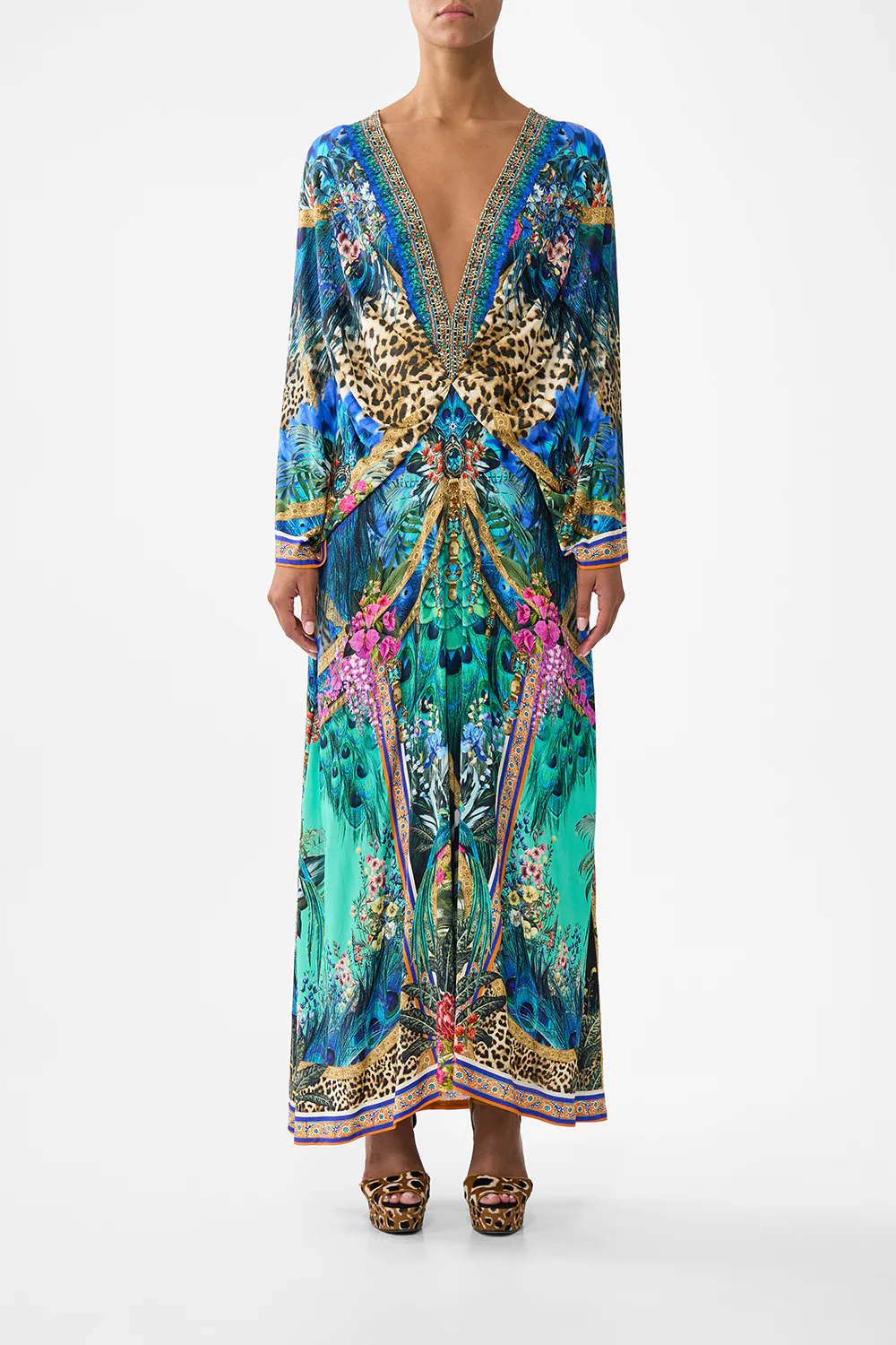 V-NECK FULL LENGTH BIAS SLIP DRESS BODRUM BOTANICALS