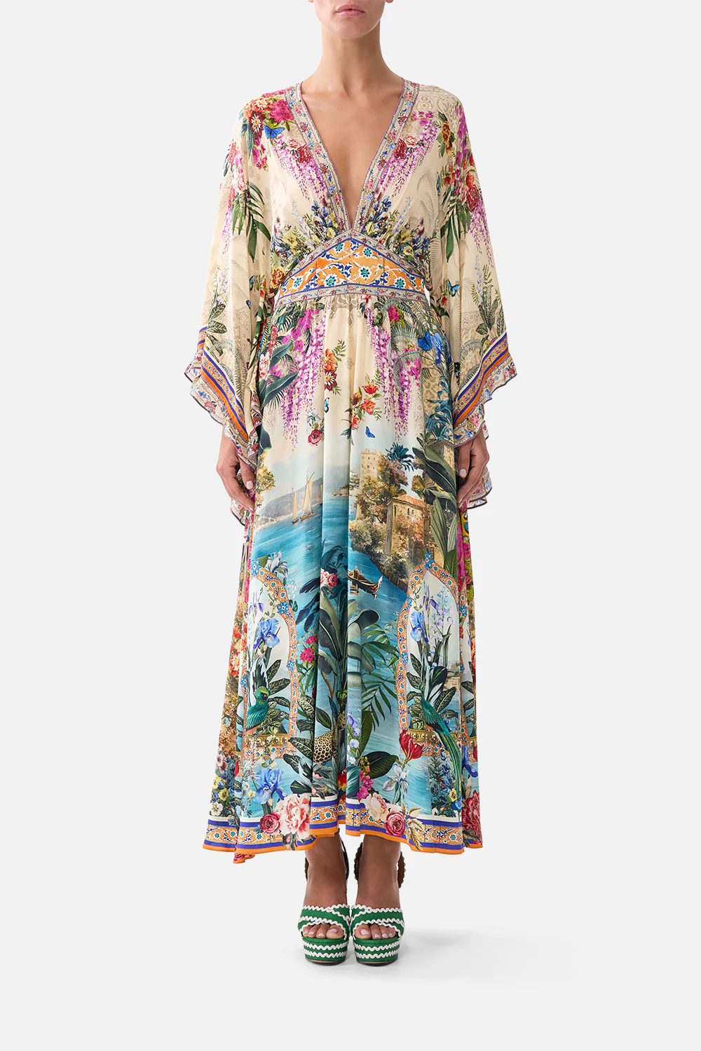 WAISTED DRESS WITH KIMONO SLEEVE BODRUM BOTANICALS