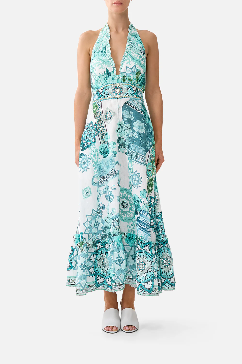 RUFFLE HEM HALTER DRESS TURKISH DELIGHT