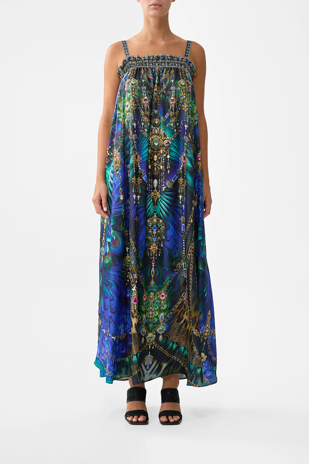 HIGH NECK RUFFLE KAFTAN WATERCOLOUR WONDERLAND