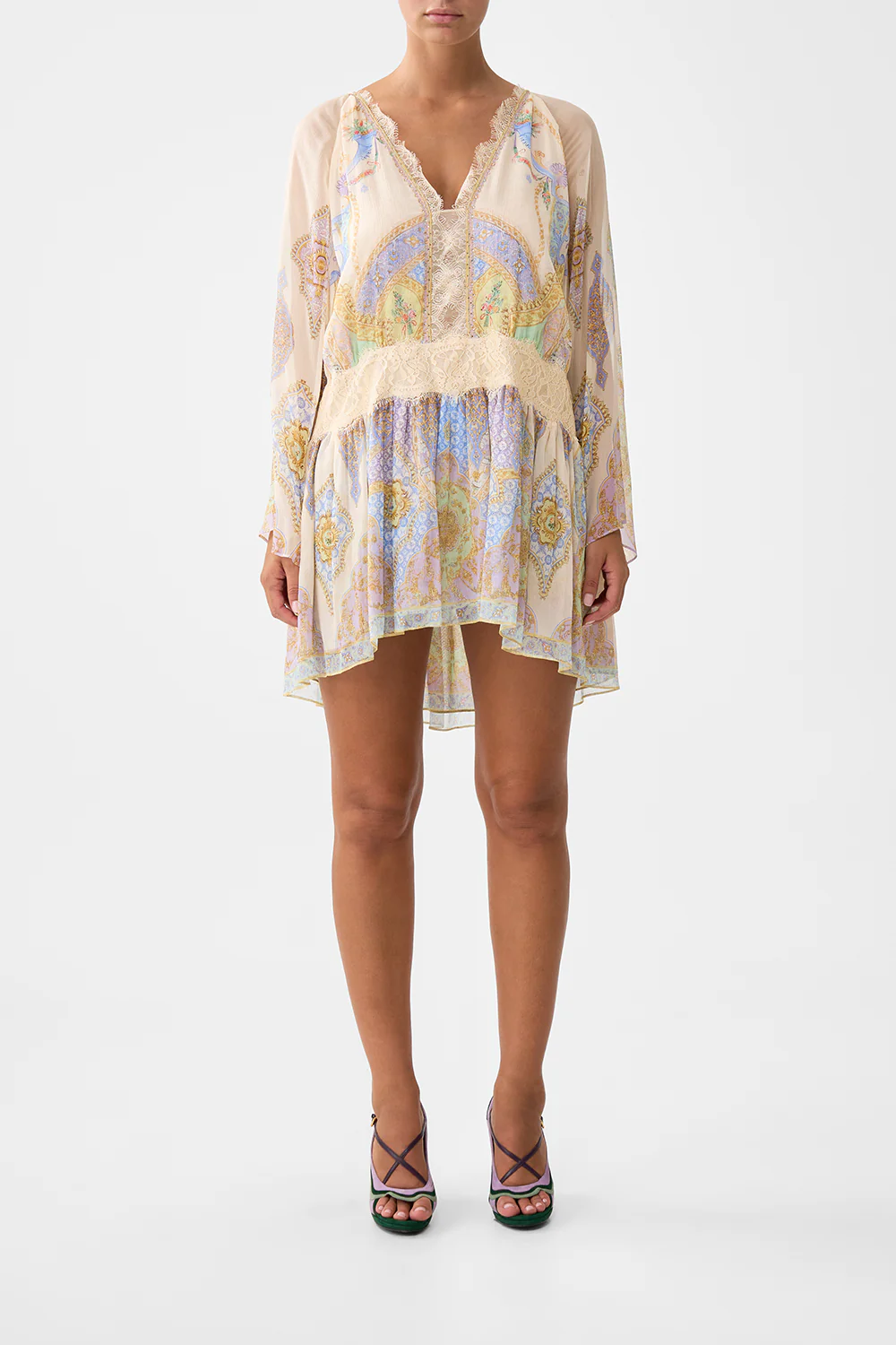 LONG SLEEVE TIERED SHORT DRESS FOLK AFLOAT