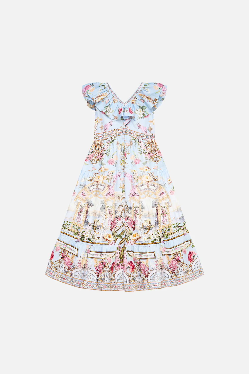KIDS TIERED MAXI DRESS WITH FRILL NECK TILED IN TIME