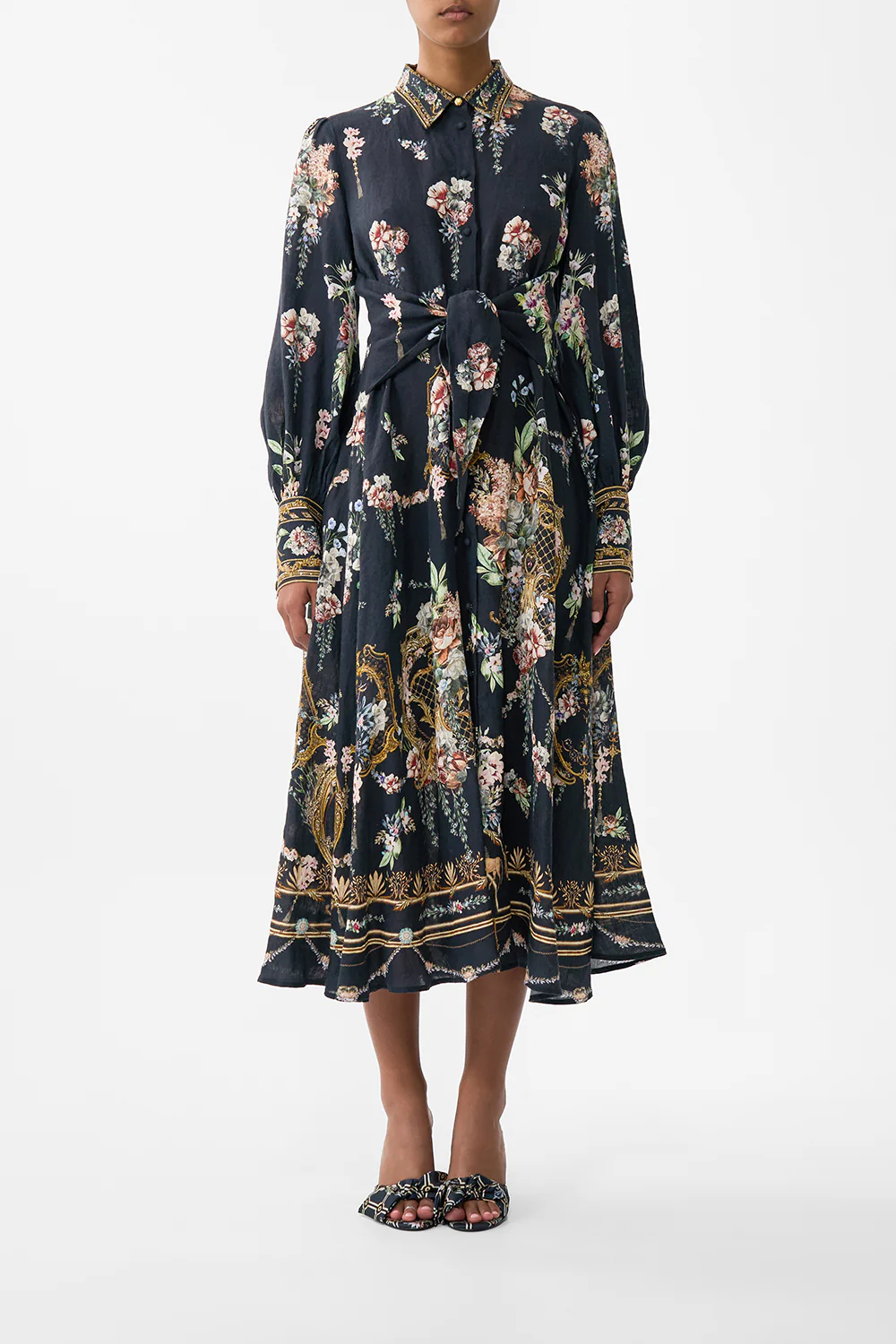 LONG SPLIT FRONT TWIST DRESS BASKED IN BAROQUE