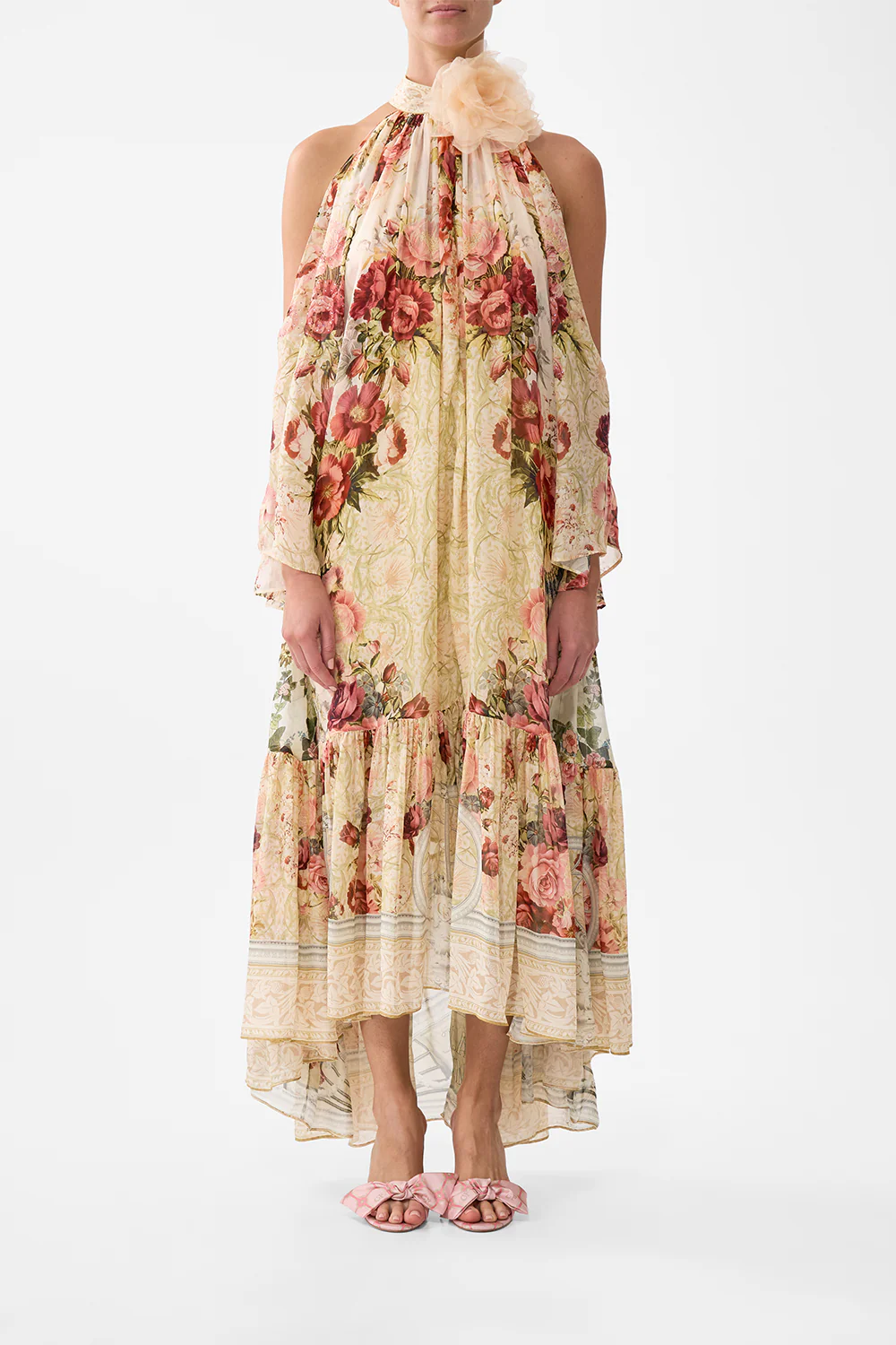 STRAPLESS MAXI WITH RUFFLE HEM FLORAL FREEFALL