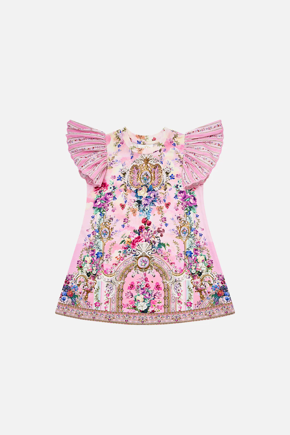 KIDS TEE MINI DRESS WITH ANGLAISE SLEEVE PALATIAL PASTELS