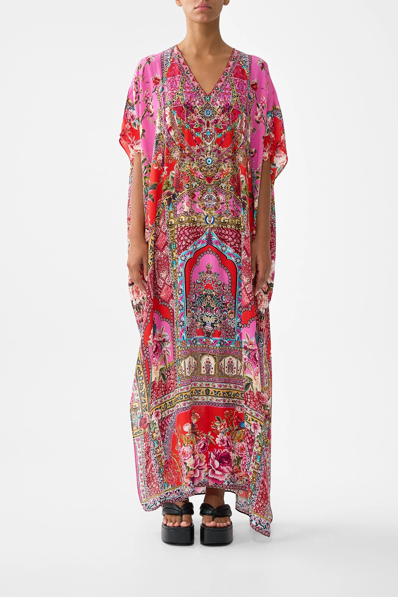 HIGH NECK RUFFLE KAFTAN WATERCOLOUR WONDERLAND