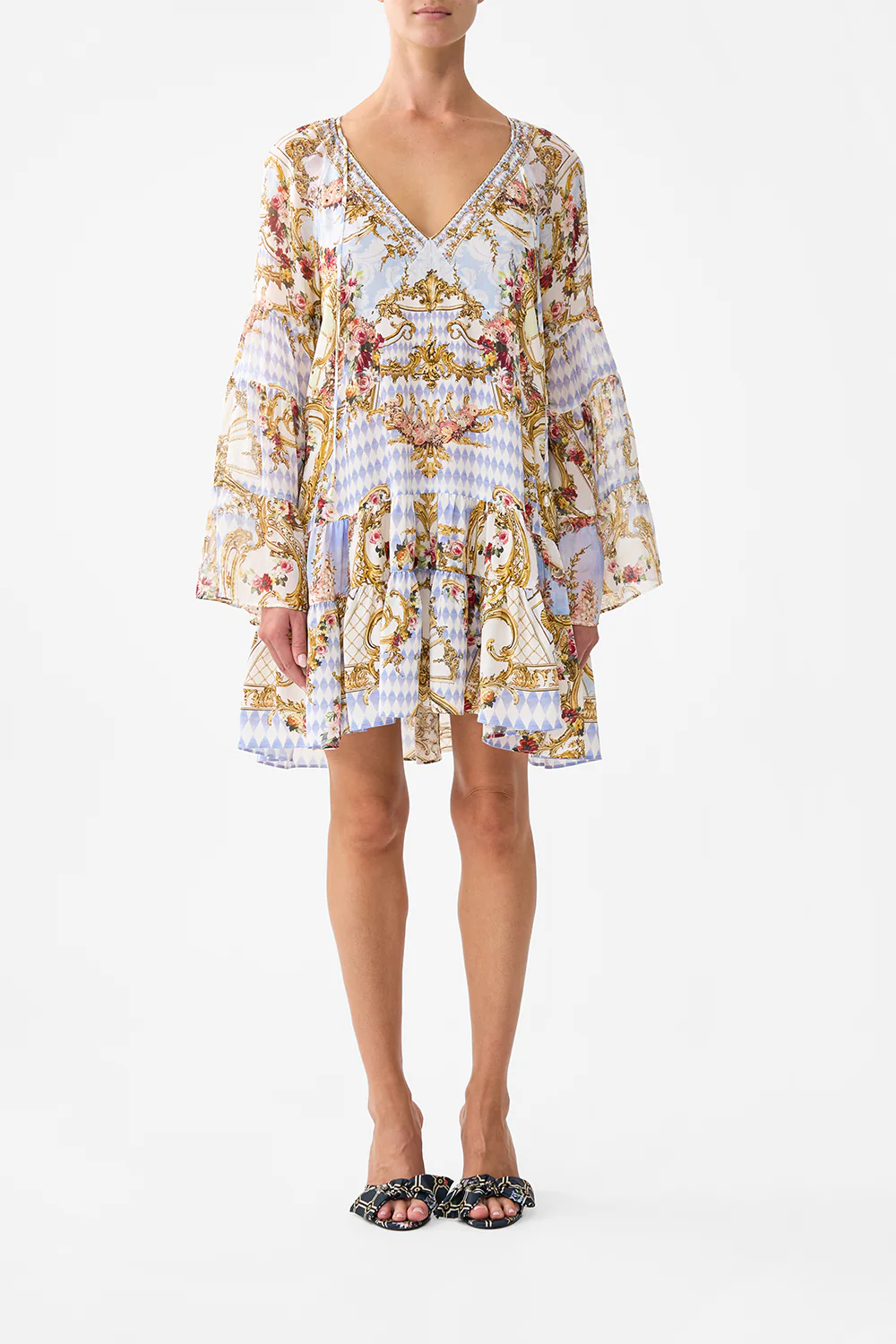 GATHERED BUST TIERED MINI DRESS PESTANA PANORAMA
