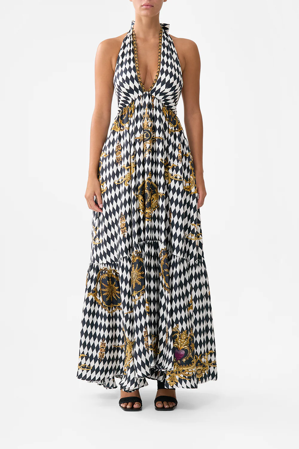 BIAS HALTER DRESS WITH RUFFLE HEM THE QUEENS QUARTERS