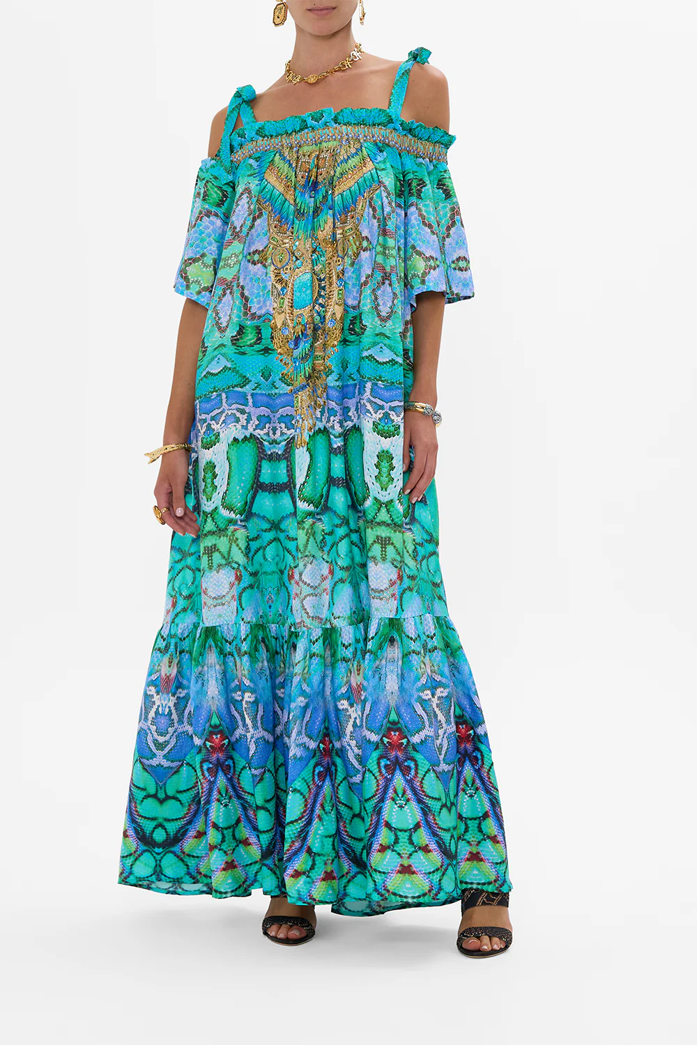 GATHER NECK HARDWARE MAXI DRESS LAND OF WONDER