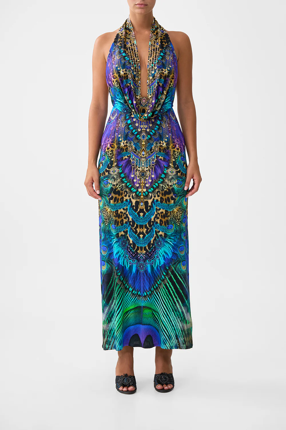 LONG SPLIT FRONT TWIST DRESS BASKED IN BAROQUE