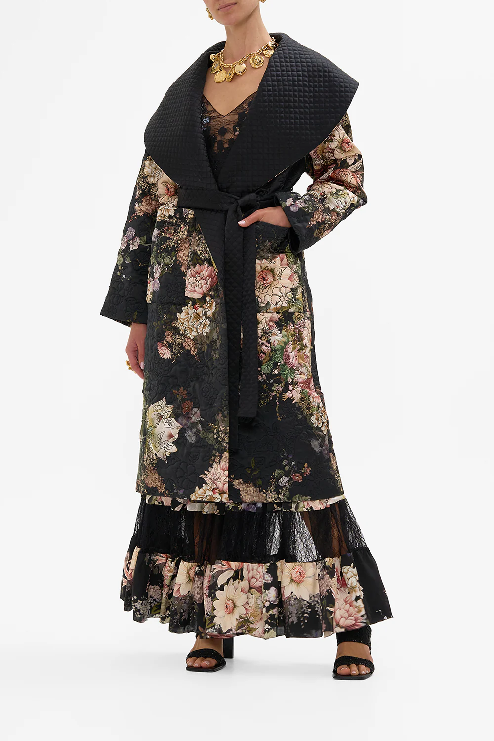 QUILTED LONG WRAP COAT DYNASTY DAZE