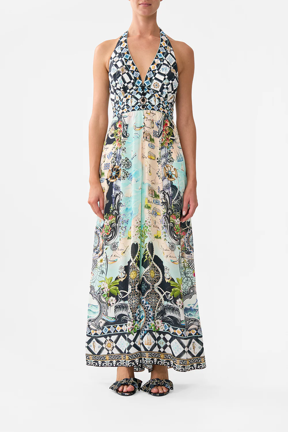 HALTERNECK JUMPSUIT WITH TIE NECK FOLK AFLOAT