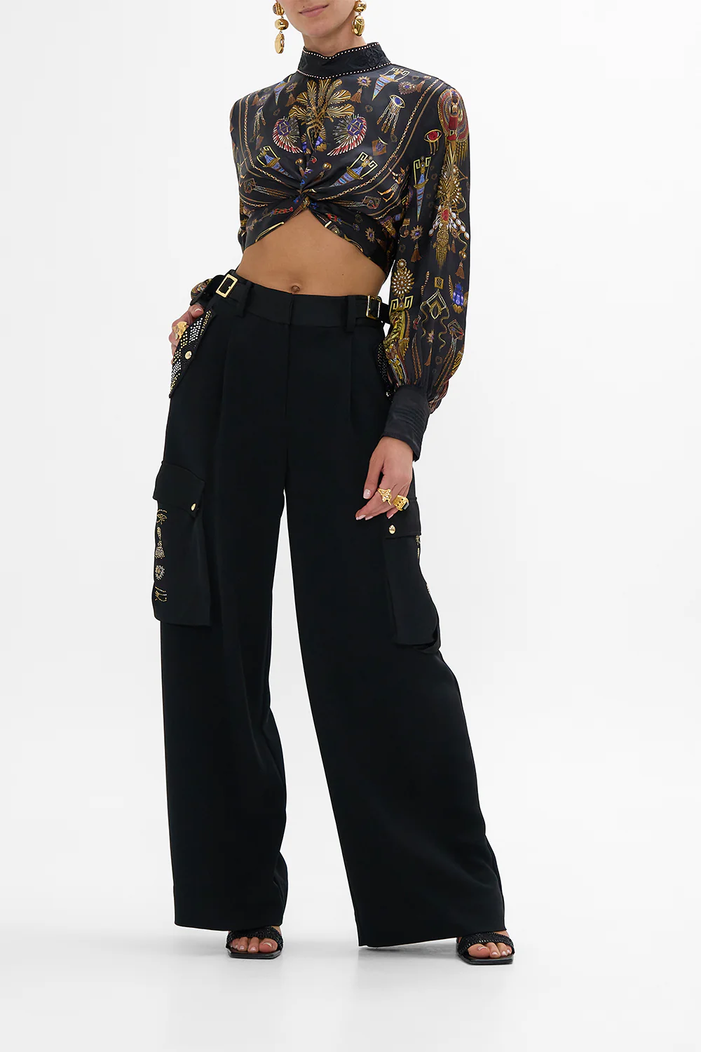 LONG SLEEVE HIGH NECK TOP WITH FRONT KNOT KINGDOM OF HEIROGLYPHS