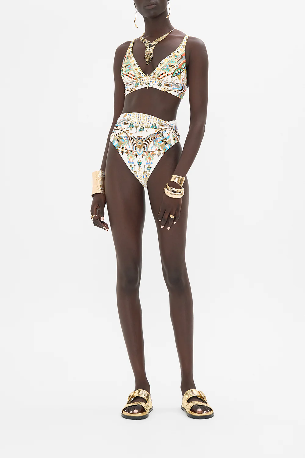 CRINKLE STRETCH HIGH WAIST BIKINI BOTTOM WITH BACK TRIM FELINE FOLKLORE