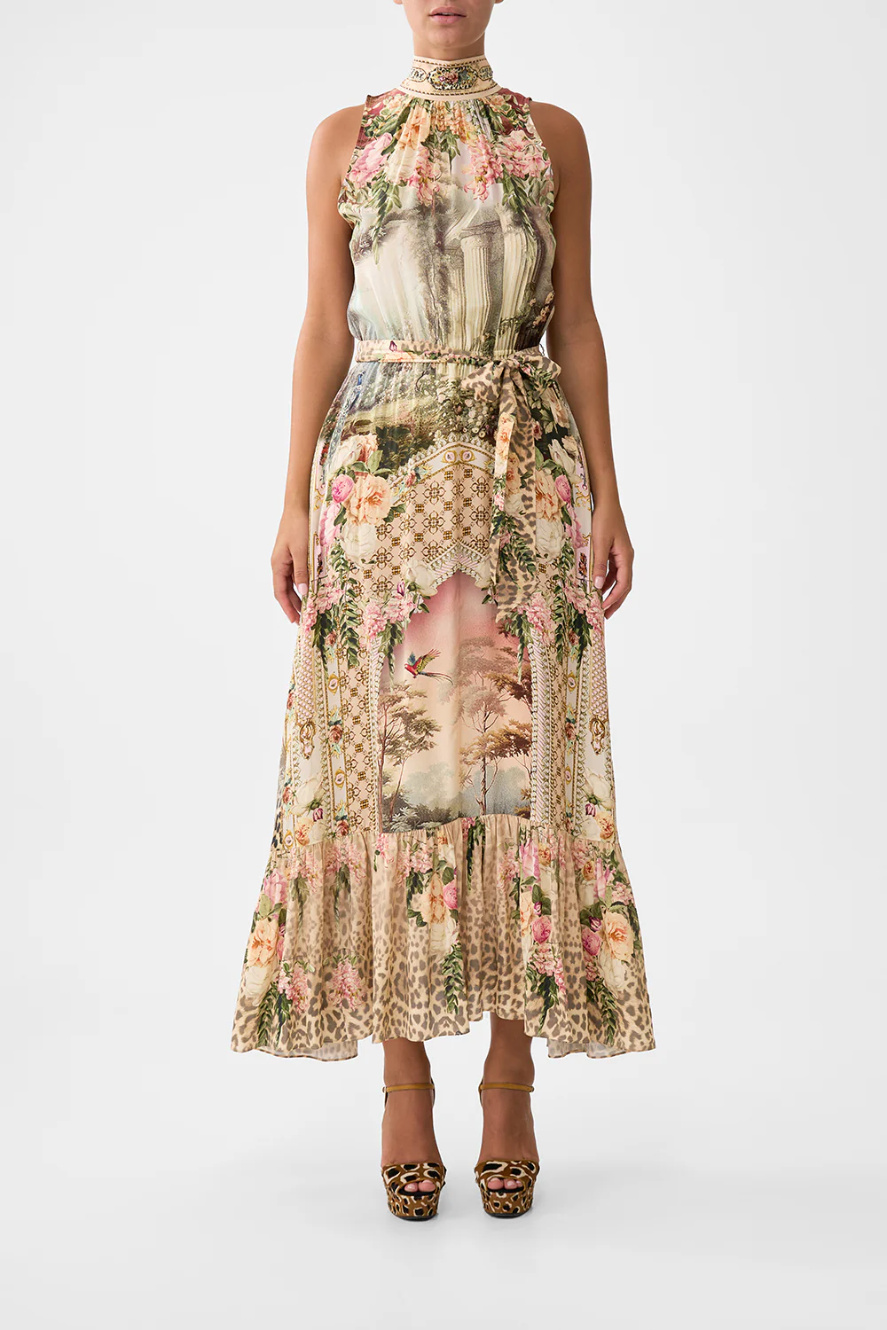 NECKTIE DRESS WITH ELASTICATED WAIST WATERCOLOUR WONDERLAND