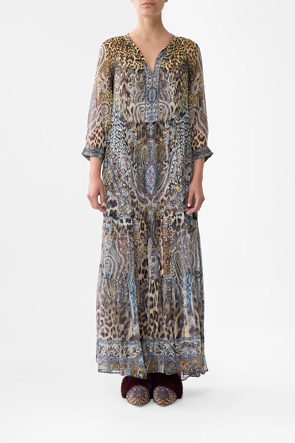 LONG GATHERED PANEL DRESS ISTANBUL ANIMALIA