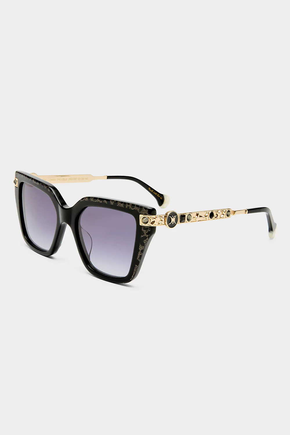 HERE COMES TROUBLE SUNGLASSES BLACK / GOLD LEOPARD GLITTER