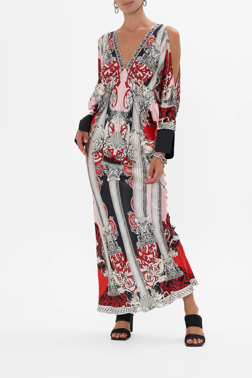 PLUNGE NECK DRAPED SHOULDER DRESS MARK OF MEDUSA