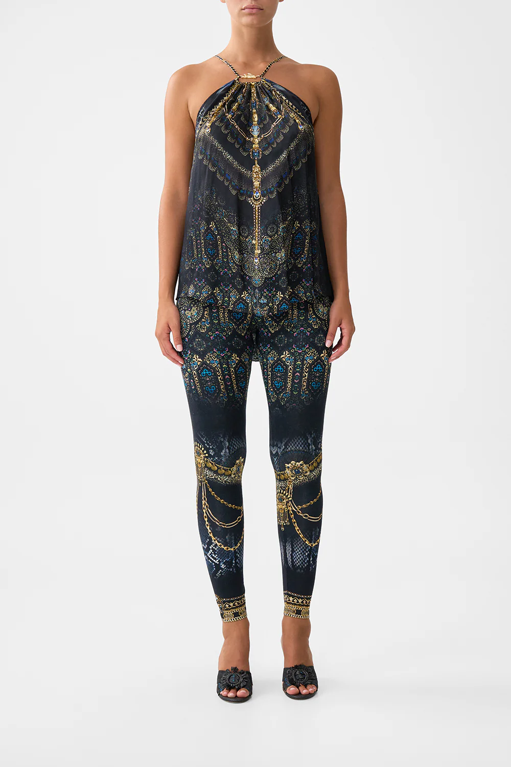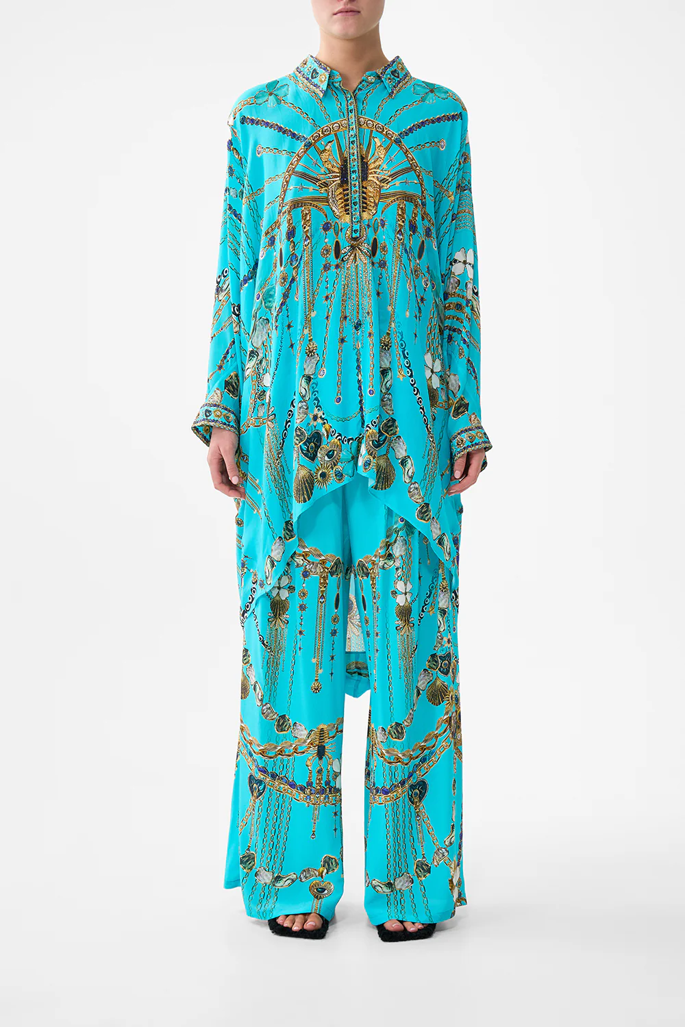 BUTTON UP TOP WITH DRAPED BACK TOTEMS AND TREASURES