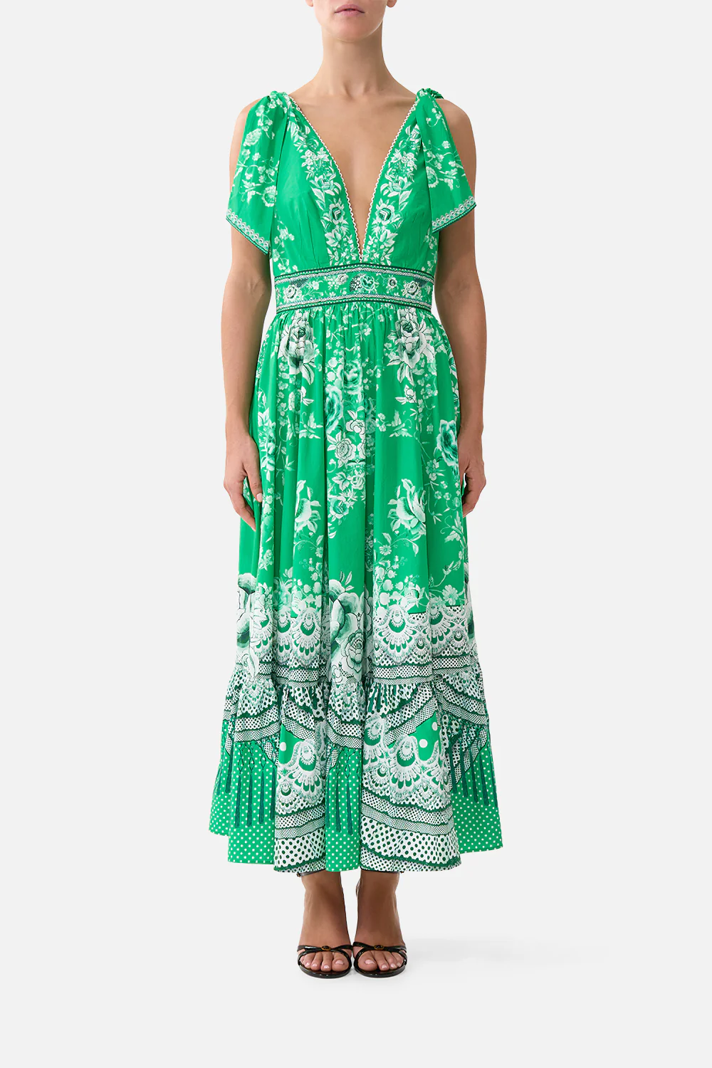 V-NECK EMBROIDERED MIDI DRESS KAPADOKYA KITSCH